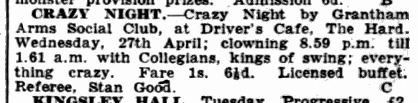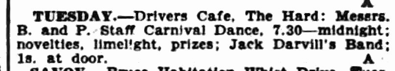 25-8-1909 8-3-1932 1-3-1933 4-5-1933 18-9-1934 3-1-1935 24-9-1935 30-9-1935 11-1-1936 14-5-1936 22-9-1936 13-10-1936 19-10-1936 19-4-1938 26-4-1938 16-12-1938 6-2-1939 Outside Drivers Restaurant